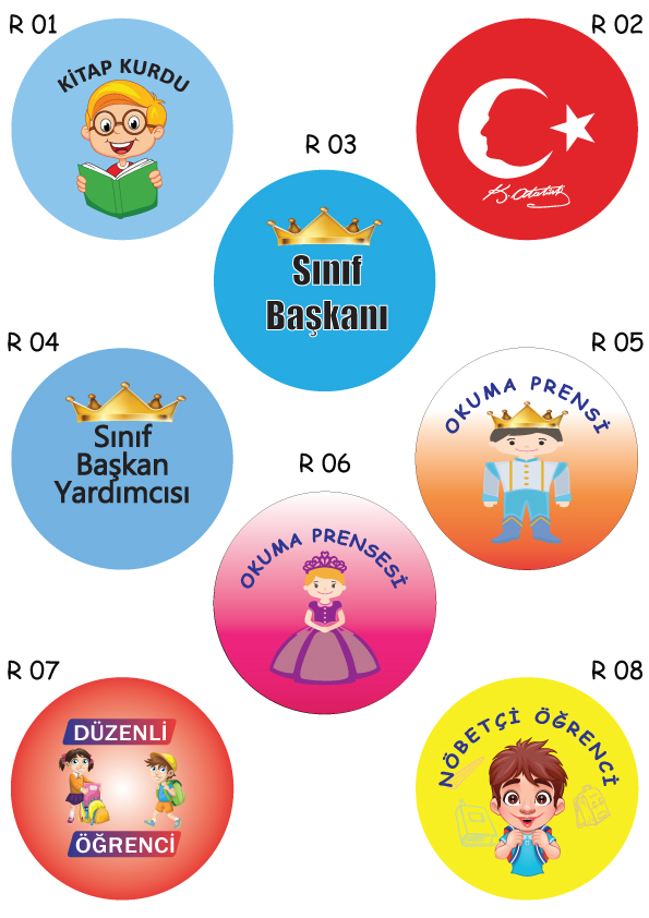 Sizler için isimli rozet hazırladık. Sınıf listenizi gönderin, rozetlerden istediğinizi seçin, en kısa zamanda hazırlayıp sizlere kargo ile ulaştıralım…