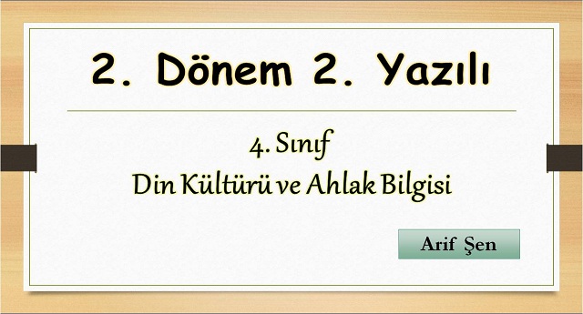 4. Sınıf Din Kültürü ve Ahlak 2. Dönem 2. Yazılı