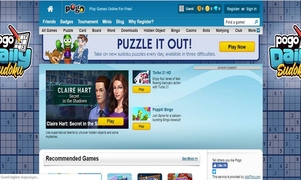 Bu web sitesi Plants Vs Zombies, Scrabble ve daha birçok popüler oyun için yararlıdır. Pogo.com, sizi saatlerce eğlendirecek çeşitli oyunlara sahiptir. Ancak site sizden ücretsiz çevrimiçi oyunlar oynamak için kayıt olmanızı istiyor ve tek bir oyunda birden fazla reklam var. Bazı oyunlarda, çevrimiçi oyun deneyimini engelleyebilecek uzun bir yükleme ekranı bulunur.